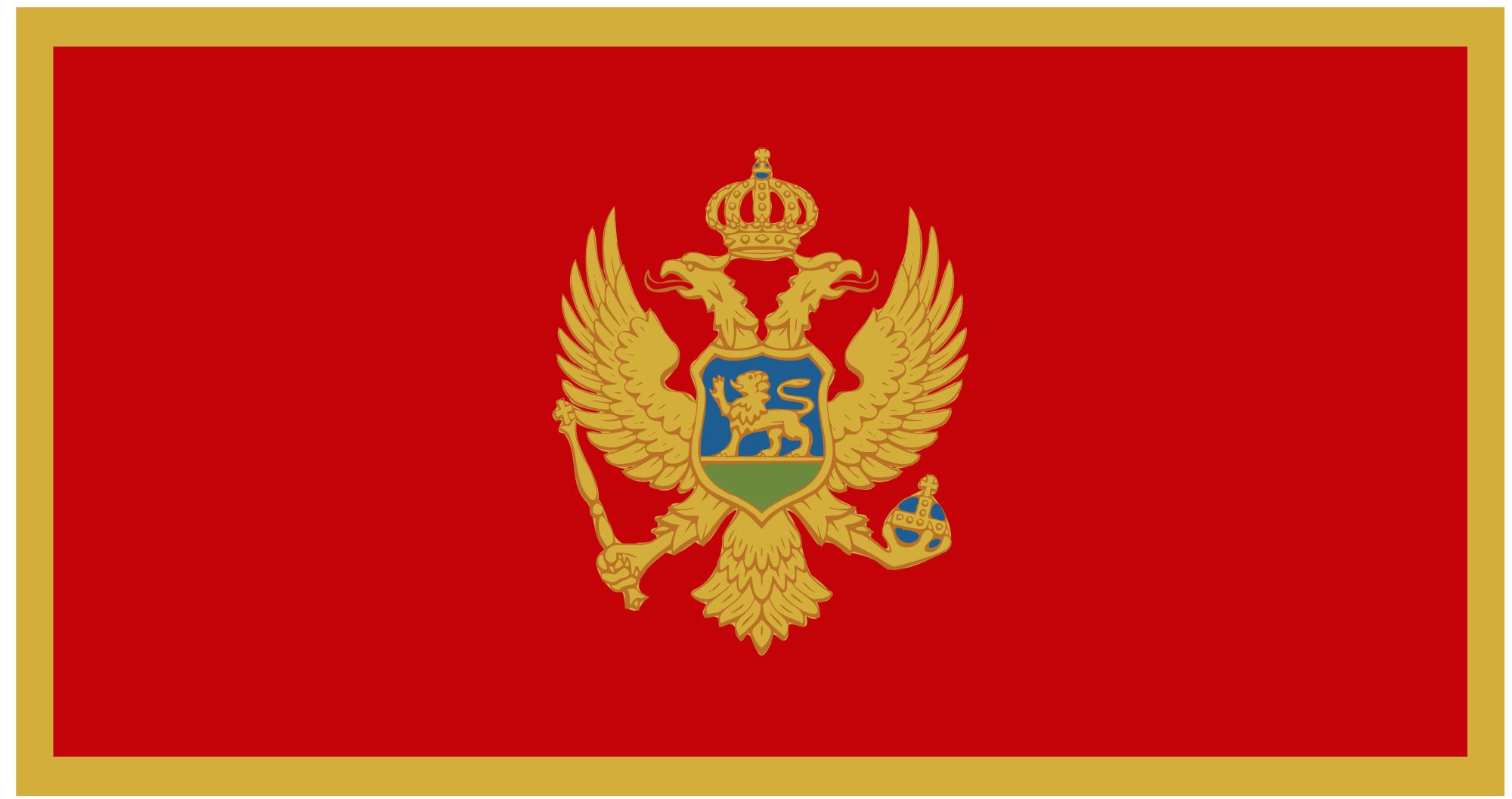 Flaga jest prostokątem o czerwonym kolorze ze złotym obramowaniem. Na środku znajduje się godło Czarnogóry, czyli dwugłowy złoty orzeł symbolizujący jedność kościoła i państwa. Wywodzi się on z Bizancjum. Orzeł jest w koronie z krzyżem co oznacza przywiązanie do chrześcijaństwa. Dzierży berło i niebieskie jabłko królewskie, które podobnie jak złota korona są symbolami władzy i autorytetu oraz monarchicznej historii. W środku orła znajduje się tarcza przedstawiająca złotego lwa na zielonym polu na niebieskim tle. Jest to symbol władzy biskupiej i nawiązanie do czasów kiedy Czarnogóra była księstwem biskupim. Obecna flaga nawiązuje do sztandaru wojskowego z XIX wieku oraz osobistego sztandaru króla Mikołaja I.