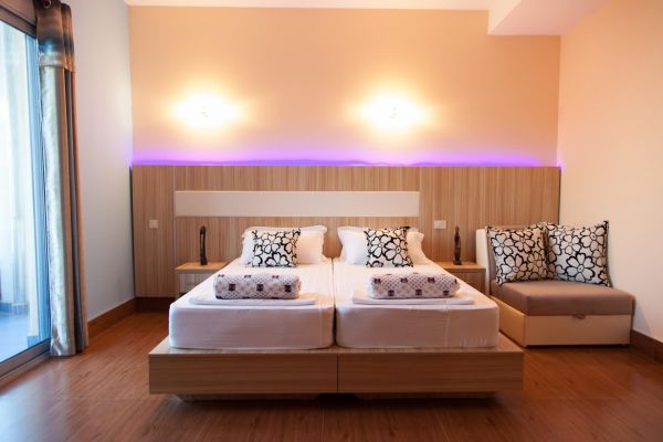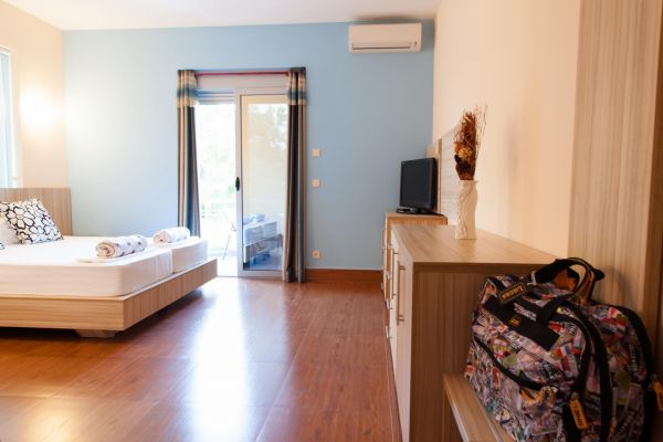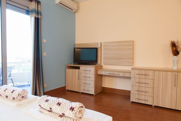 Pokoje 2-3 osobowe wyposażone w łazienkę (prysznic, WC, suszarkę, ręczniki), klimatyzację, TV, balkon, Wi-Fi, stolik i krzesła.
