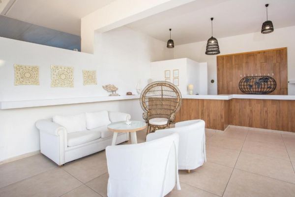 Obiekt Evita jest usytuowany w zacisznym zakątku w gaju oliwnym. Goście mają do dyspozycji odkryty basen z wydzieloną częścią dla dzieci, który jest czynny latem. Zaplecze gastronomiczne obiektu obejmuje restaurację i bar przy basenie. W pomieszczeniach ogólnodostępnych można korzystać z bezpłatnego WiFi. Pokoje w obiekcie Evita dysponują balkonem z widokiem na ogród lub Morze Egejskie.