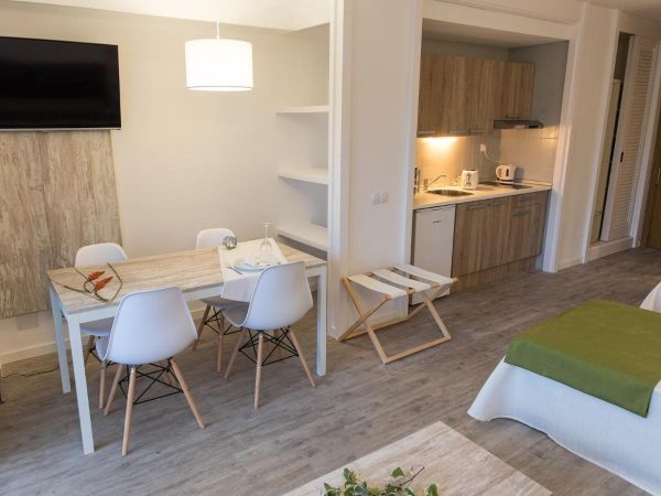 STUDIO o powierzchni ok 30 m2, przeznaczone dla maksymalnie 3 osób: łazienka z wanną/prysznicem, WC, suszarka, zestaw kosmetyków , sypialnia z 2 połączonymi łóżkami pojedynczymi, wydzielony pokój dzienny z aneksem kuchennym, rozkładaną sofą, stół jadalny, klimatyzacja, telefon, TV, Wi-Fi (płatne), sejf (płatny), czajnik elektryczny, mini bar (płatny), balkon lub taras, widok na teren hotelu/baseny/ogród.