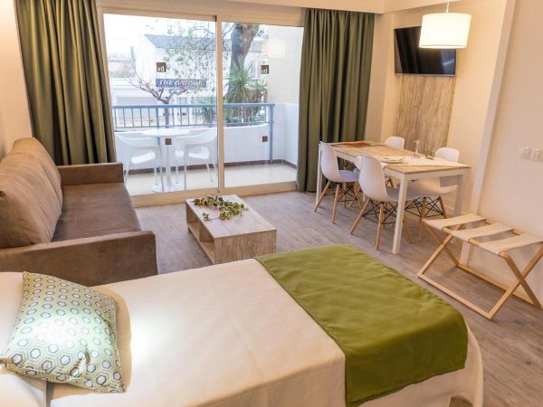 1 BEDROOM APARTMENT o powierzchni ok 42 m2, przeznaczone dla maksymalnie 4 osób, odnowione w 2017 roku: łazienka z wanną/prysznicem, WC, suszarka, zestaw kosmetyków , sypialnia z 2 połączonymi łóżkami pojedynczymi, oddzielny pokój dzienny z aneksem kuchennym, stół jadalny, garderoba, klimatyzacja, telefon, TV, Wi-Fi (płatne), sejf (płatny), czajnik elektryczny, mini bar (płatny), taras, widok na teren hotelu/baseny/ogród.