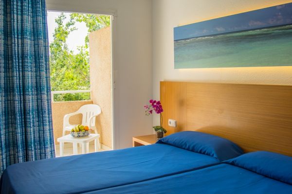 ONE BEDROOM APARTMENT with balcony – przeznaczony dla maksymalnie 4 osób: łazienka z wanną/prysznicem, suszarka, składające się z oddzielnej sypialni z łóżkiem podwójnym/dwoma łózkami pojedynczymi, pokoju dziennego z 2 rozkładanymi sofami, stolikiem jadalnym, wyposażone w klimatyzację, telefon, TV, Wi-Fi (płatne) sejf (płatny), balkon lub taras. Widok na teren hotelu/ okolicę.