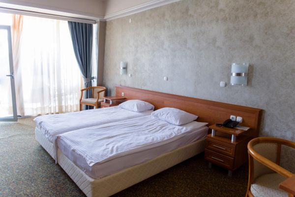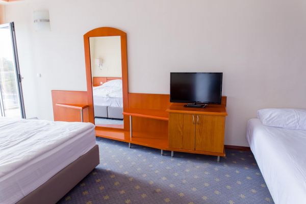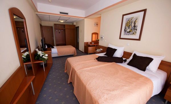 Hotel posiada 200 pokoi o metrażu od 22m2. Pokoje 2-osobowe z możliwością dostawki, 4-osobowe pokoje rodzinne oraz pokoje superior z widokiem na jezioro (dla max 3 os - są to nowe pokoje, wyremontowane na sezon 2025) wyposażone w łazienkę i suszarkę do włosów, bezpłatną klimatyzację, bezpłatne Wi-Fi, TV/SAT, mini bar/lodówkę, balkon lub taras. Możliwość skorzystania z pralni (dodatkowo płatna).